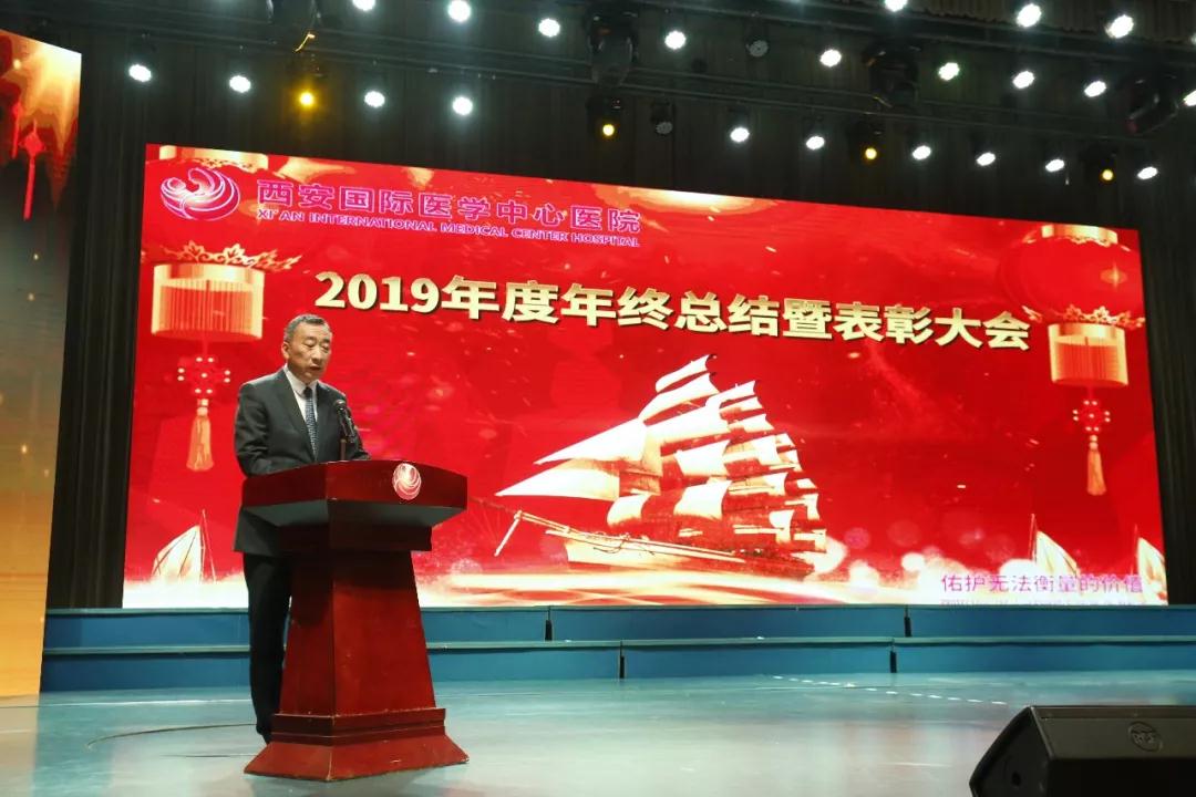 凱歌高奏辭舊歲,春風(fēng)得意迎新年。12月27日,西安國(guó)際醫(yī)學(xué)中心醫(yī)院2019年度年終總結(jié)暨表彰大會(huì)在吉源國(guó)際酒店舉行。國(guó)際醫(yī)學(xué)副總裁孫文國(guó)、西安國(guó)際醫(yī)學(xué)中心醫(yī)院院長(zhǎng)尹強(qiáng)、財(cái)務(wù)總監(jiān)權(quán)穩(wěn)延、副院長(zhǎng)楊峰、副院長(zhǎng)李武平以及各??漆t(yī)院、各科室領(lǐng)導(dǎo)等出席。大會(huì)由西安國(guó)際醫(yī)學(xué)中心醫(yī)院總經(jīng)理王志峰主持。1000余名員工齊聚一堂,總結(jié)回顧2019,共話奮斗歷程,共享成功喜悅,共繪發(fā)展藍(lán)圖。