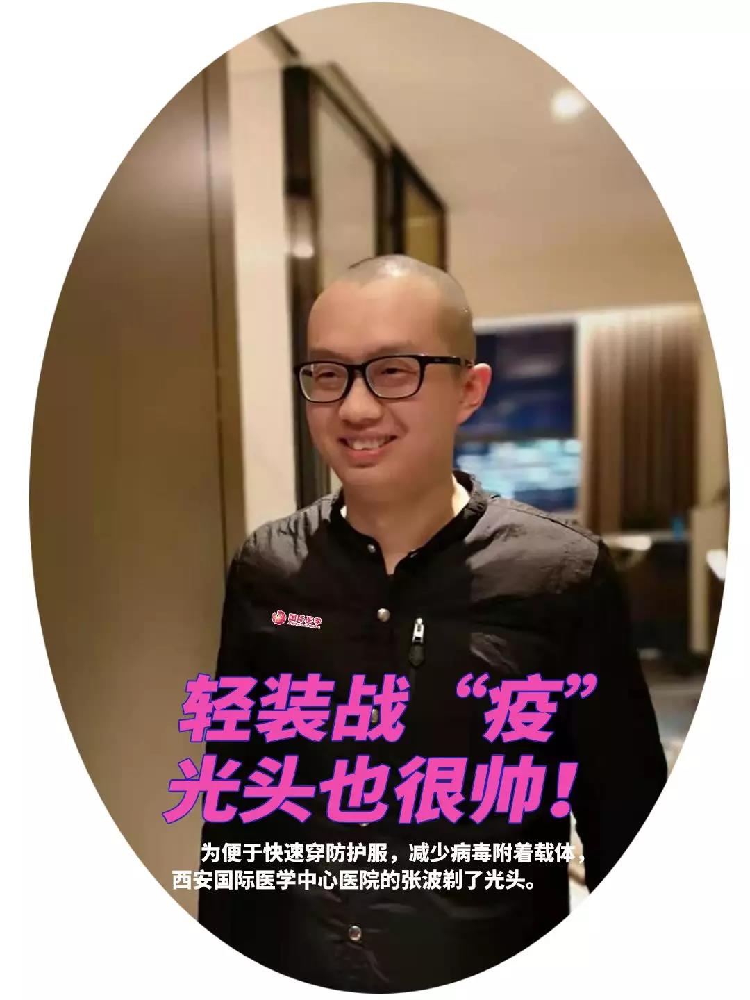 “光頭也挺帥!”大家為男護士張波隊長剃掉了頭發(fā)。張波笑著說,第一次成了光頭,有點不適應(yīng)呢。這樣好,方便穿脫防護服,做好醫(yī)療工作。