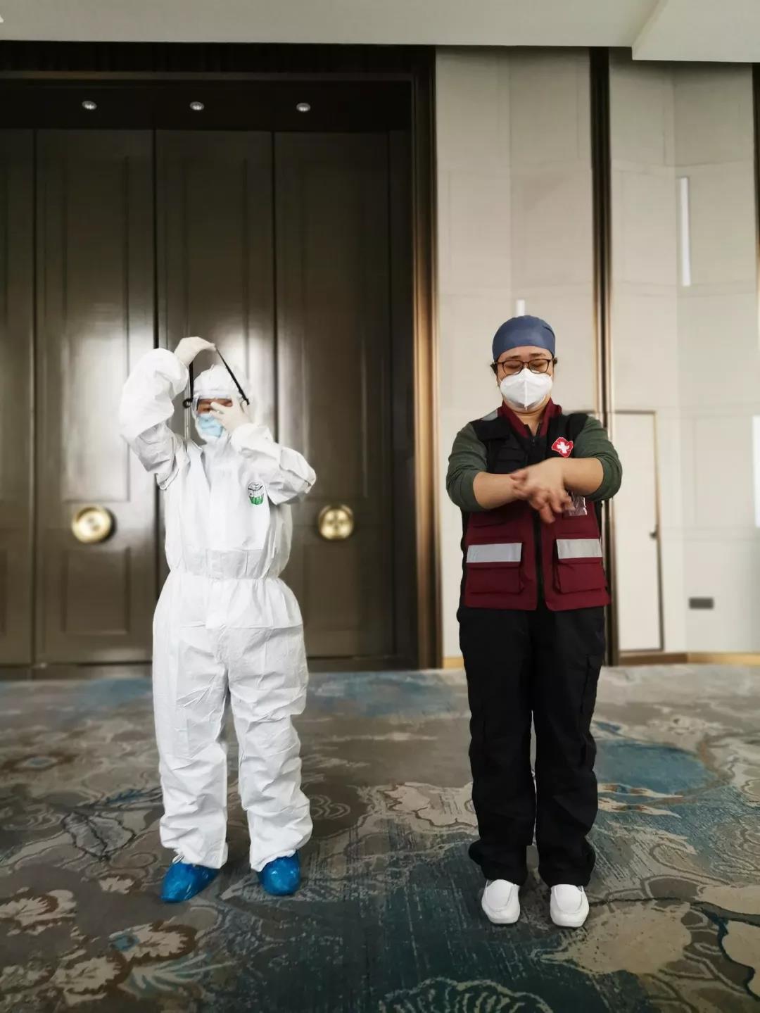 “一個動作要練習(xí)數(shù)百次,胳膊酸的抬不起來,但我必須堅持。防護是重中之重,不能有一絲一毫的疏漏。只有我們自己做好了防護,才能更好的服務(wù)于病人。”護目鏡下,可以隱約看到李晶眉宇間的汗珠。