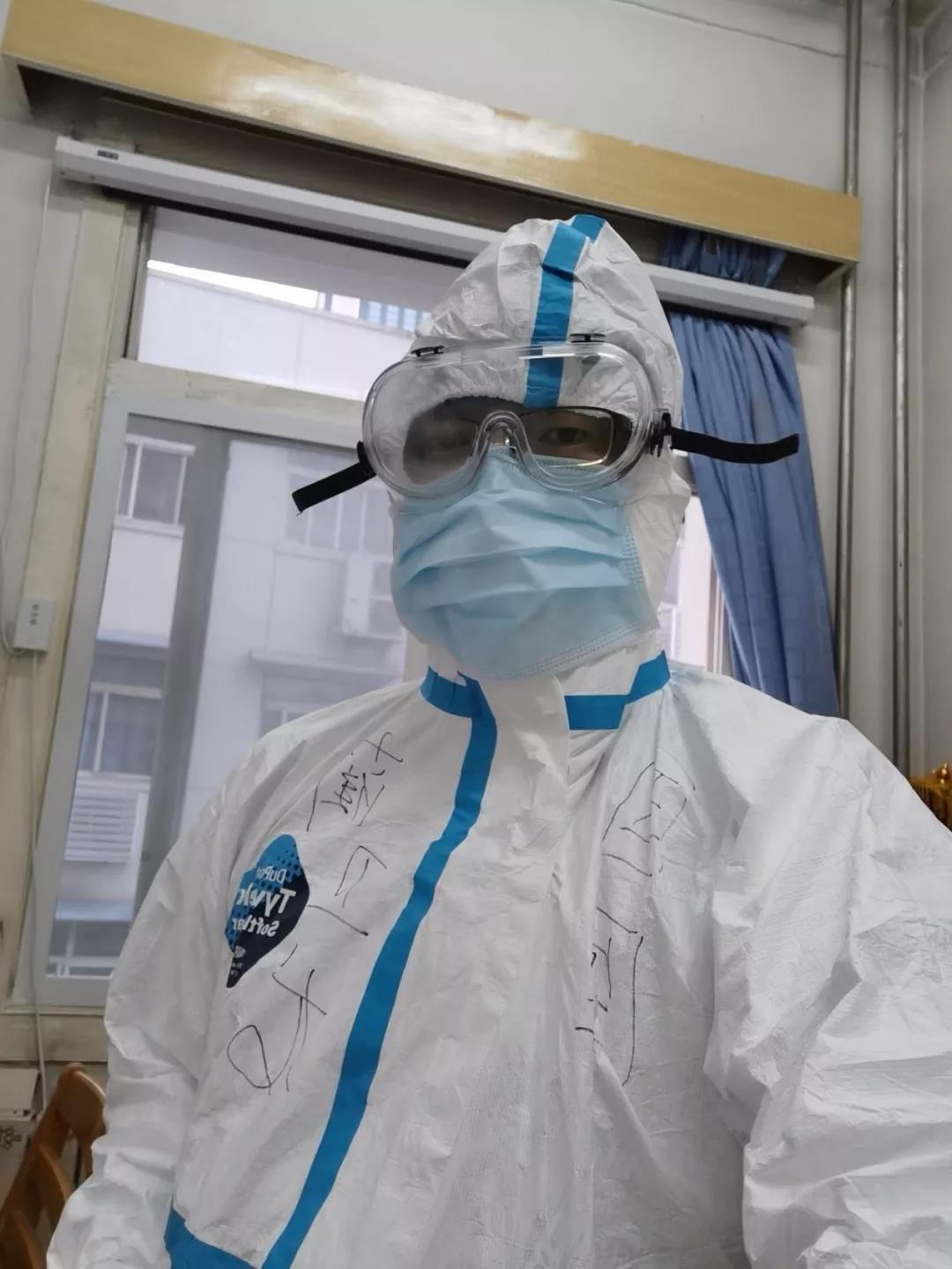 這就是病區(qū)內(nèi)醫(yī)護人員身穿防護服的日常狀態(tài)。護目鏡上厚厚的一層水霧,在極為有限的視野下,醫(yī)生和護士要完成各項醫(yī)療工作,阻力可想而知。