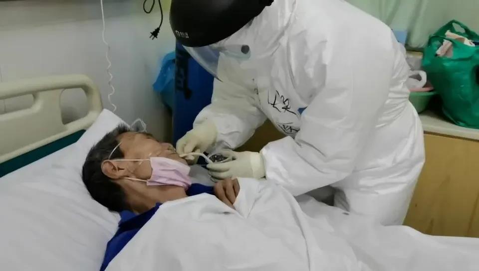 老人姓胡,是一位84歲的新冠肺炎患者。228日,進(jìn)入病房。西安國際醫(yī)學(xué)中心醫(yī)院赴湖北醫(yī)療隊賀煥護(hù)士走到老人床邊,提醒老人一定要吃點飯。