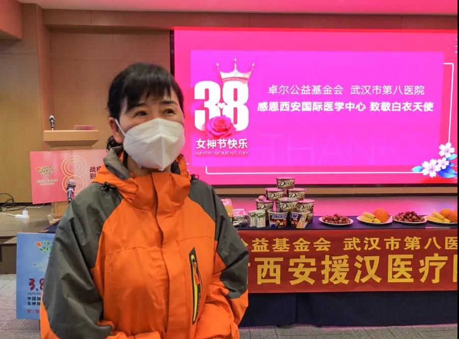 3月8日國際勞動婦女節(jié),武漢市江岸區(qū)副區(qū)長蔣志耕,江岸區(qū)衛(wèi)健局黨委書記、局長童衛(wèi)橋,武漢市第八醫(yī)院黨委書記唐迎春,卓爾公益基金會副理事長方黎等領(lǐng)導(dǎo)前往西安國際醫(yī)學(xué)中心醫(yī)院赴湖北醫(yī)療隊駐地,為“抗疫女神”們送上節(jié)日祝福。醫(yī)療隊隊長楊峰、黨支部書記李斌、專家組成員及隊員代表等出席。會議由江岸區(qū)衛(wèi)健局童衛(wèi)橋書記局長主持。