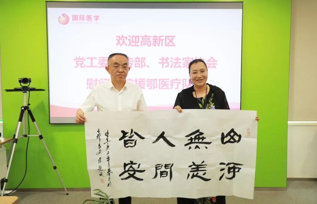 5月12日第109個國際護士節(jié),西安高新區(qū)黨工委宣傳部、書法家協(xié)會一行14人蒞臨西安國際醫(yī)學(xué)中心醫(yī)院,以書籍和書法作品慰問在疫情期間馳援湖北的抗疫英雄,向他們致以崇高的敬意。醫(yī)院總經(jīng)理王志峰、副院長楊峰等領(lǐng)導(dǎo)和護理人員代表參會。