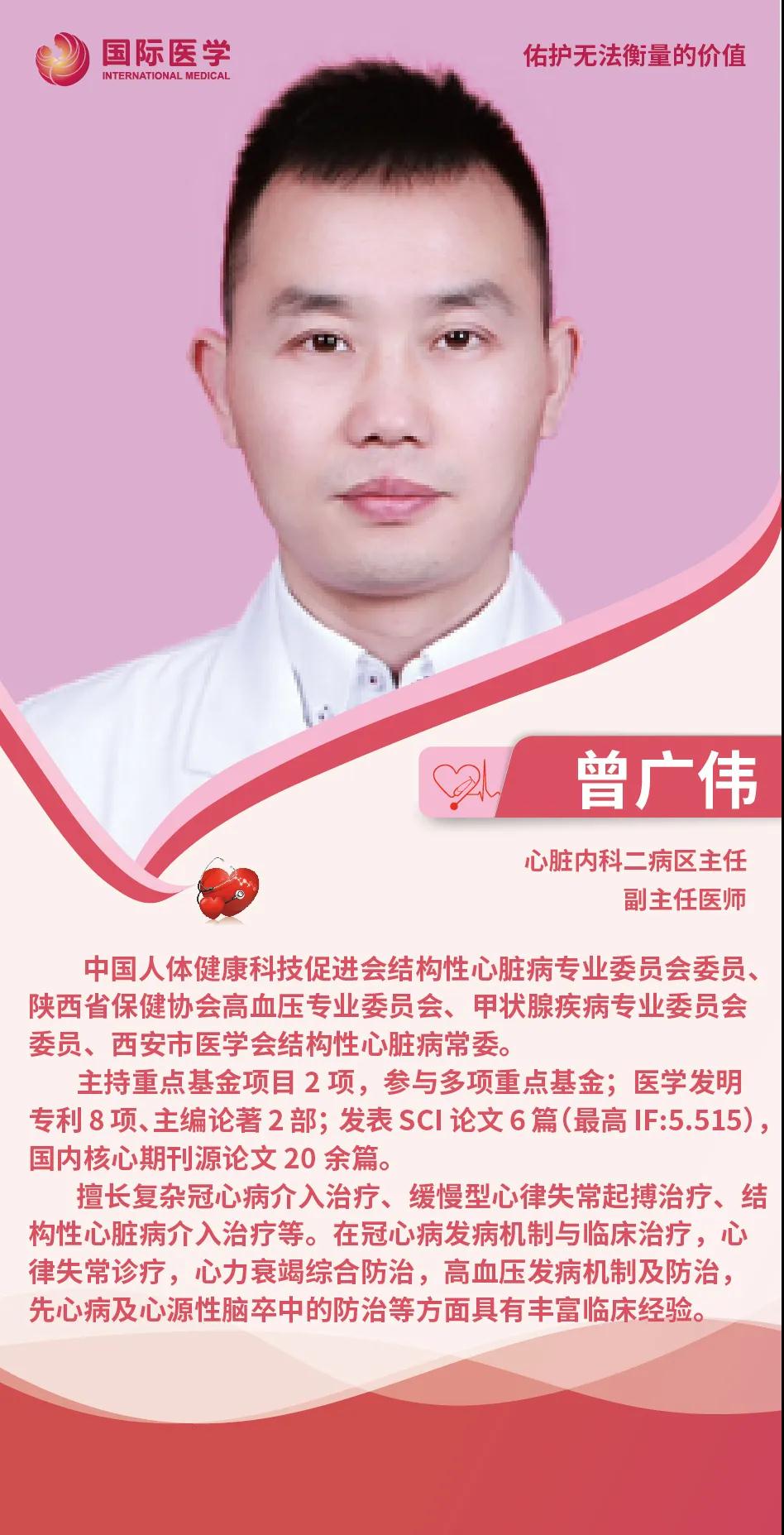 西安國際醫(yī)學(xué)中心心臟病醫(yī)院心臟內(nèi)科二病區(qū),現(xiàn)有醫(yī)護團隊33人,由原空軍軍醫(yī)大學(xué)唐都醫(yī)院心內(nèi)科曾廣偉教授任學(xué)科帶頭人,由原西京醫(yī)院張小娜任護士長,醫(yī)師團隊共14人,其中高級職稱2人,中級職稱6人,博士2人,碩士及以上學(xué)歷占70%,團隊人才梯隊合理,專業(yè)技術(shù)水平過硬。