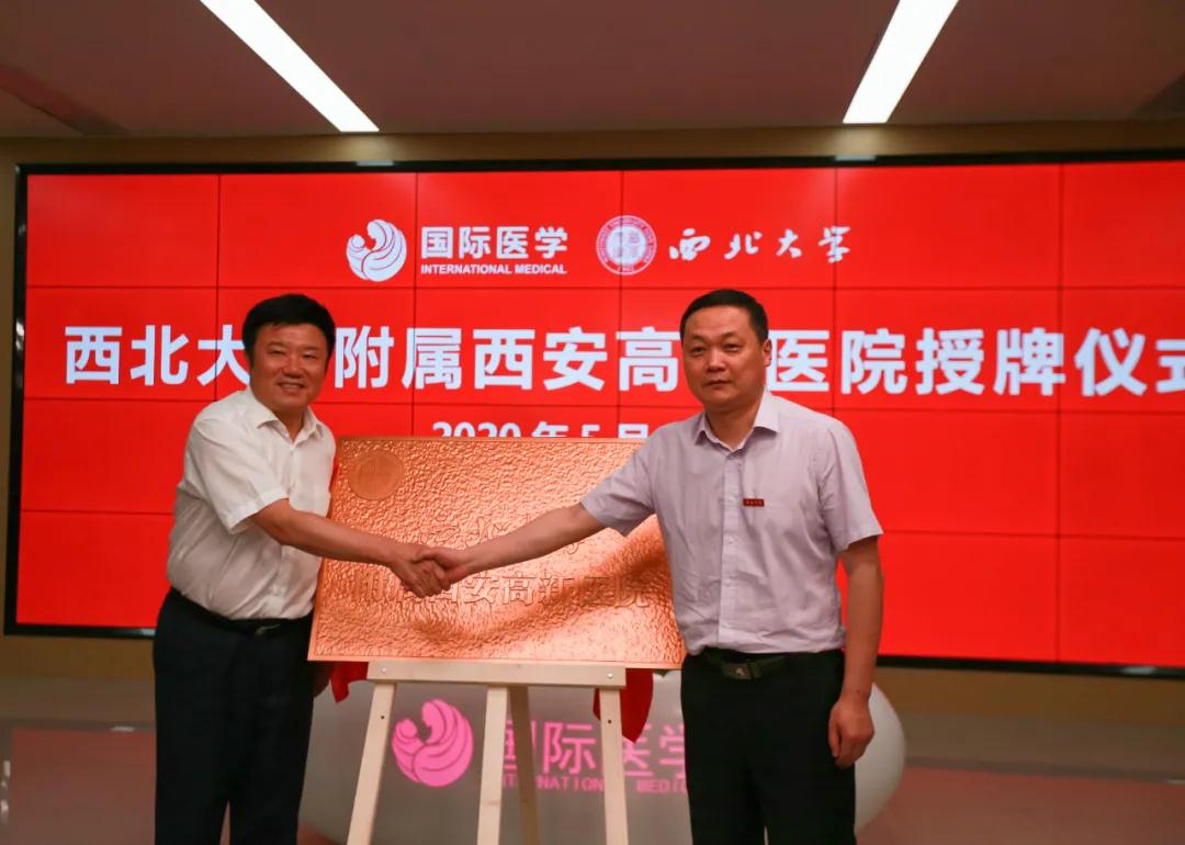 最后,在嘉賓們共同見證下,西北大學(xué)附屬西安國際醫(yī)學(xué)中心醫(yī)院、西北大學(xué)附屬西安高新醫(yī)院正式揭牌,會場響起熱烈掌聲。