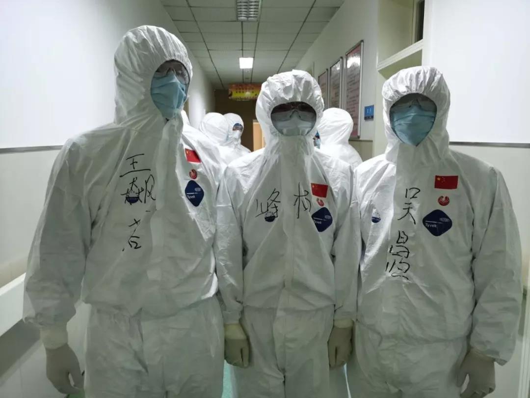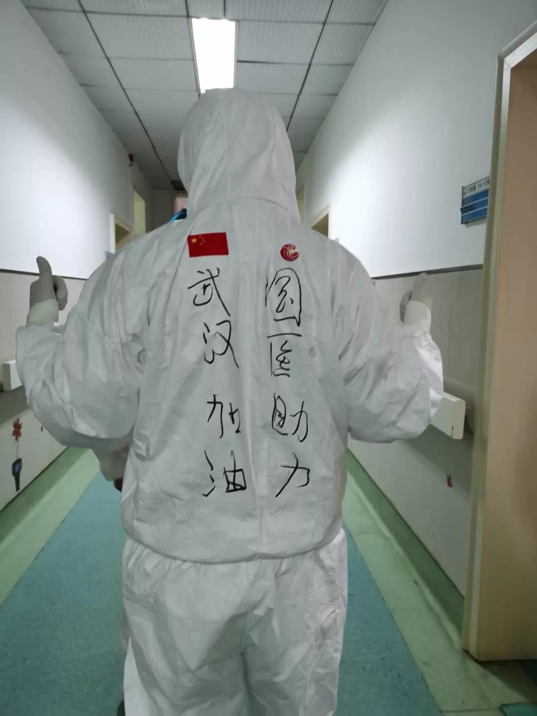 培訓(xùn)后的隊員開始穿戴防護服,由于身著防護服,看不清彼此的面容,醫(yī)護人員在防護服上背后寫上自己的姓名,一個個化身暖心“大白”,彼此加油打氣,“武漢加油、國醫(yī)加油!”一字一句鼓舞人心,充滿力量。面對疫情和種種未知的風(fēng)險,西安國際醫(yī)學(xué)中心醫(yī)院醫(yī)療隊隊員主動請纓,勇于上前,他們是最美逆行者!
