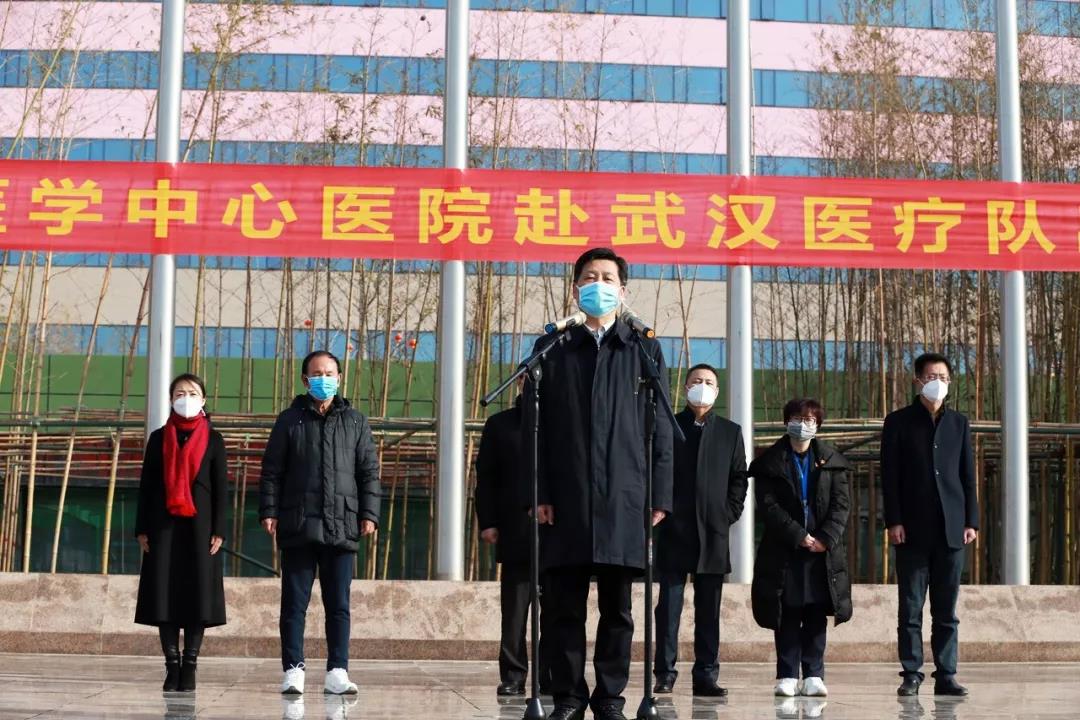陜西省衛(wèi)健委黨組書記劉勤社說,我代表省委省政府應對新型冠狀病毒感染肺炎疫情工作領導小組和辦公室,為大家送行。西安國際醫(yī)學中心醫(yī)院率先擔當使命,主動組織醫(yī)療隊,感謝你們。希望大家堅定信心、同舟共濟、科學防治、精準施策,我們盼望大家凱旋歸來。