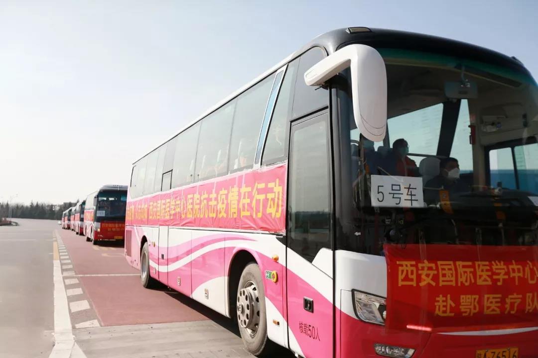 11時30分,醫(yī)療隊乘車前往西安咸陽國際機場。