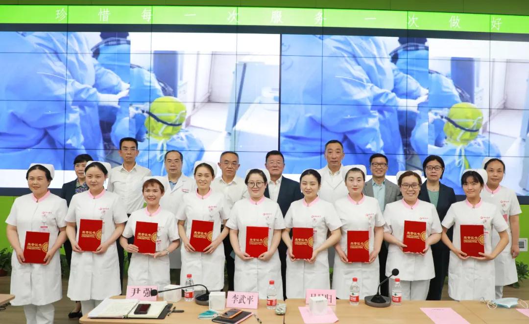 醫(yī)院領(lǐng)導(dǎo)為9名護理人員頒發(fā)了榮譽證書,并勉勵大家在今后的工作中,以嚴謹?shù)墓ぷ鲬B(tài)度、精湛的護理技術(shù)以及飽滿的精神和昂揚的斗志,為廣大患者的生命健康保駕護航。
