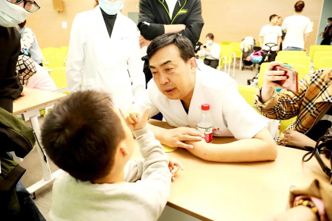 科普講座結(jié)束后,郭樹忠教授和武瑾醫(yī)生分別為小耳患者們進(jìn)行一對一的面診。小耳患者及家屬有序面診,活動(dòng)現(xiàn)場井然有序。小耳癥孩子的爸爸媽媽們從帶著很多疑問而來,剛開始眉頭緊皺,聽了兩位專家的介紹,如釋重負(fù),了然于胸。