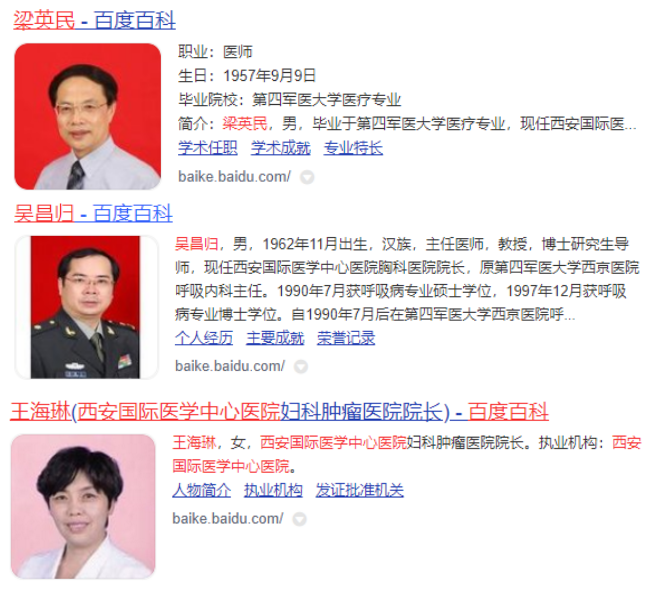 為方便于受眾了解西安國(guó)際醫(yī)學(xué)中心醫(yī)院,查詢有關(guān)專家資料,咨詢有關(guān)健康問題以及預(yù)約掛號(hào),經(jīng)過嚴(yán)格的醫(yī)生資質(zhì)和執(zhí)業(yè)資格審核,我院將50位專家資料登陸在百度百科、好大夫在線官網(wǎng)上。用戶可以通過百度APP、百度瀏覽器、好大夫在線APP、PC版網(wǎng)站、手機(jī)版網(wǎng)站、微信公眾號(hào)、微信小程序等多個(gè)平臺(tái),方便地搜索到想要了解的專家,一站式解決線上服務(wù)、線下就診等各種醫(yī)療問題。