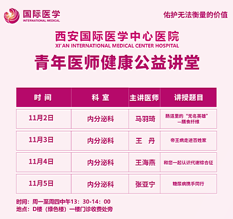 西安國際醫(yī)學(xué)中心醫(yī)院—青年醫(yī)師健康公益講堂預(yù)告