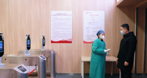 在地鐵閘機(jī)口,西安國(guó)際醫(yī)學(xué)中心醫(yī)院設(shè)立預(yù)檢通道,醫(yī)務(wù)人員為所有進(jìn)入院區(qū)人員測(cè)量體溫,并查驗(yàn)“一碼通”。健康碼為綠碼、體溫<37.3℃且無(wú)流行學(xué)史的方可進(jìn)入,若體溫≥ 37.3℃、有呼吸道癥狀或流行病學(xué)史、健康碼為黃色或紅色的人員由預(yù)檢醫(yī)務(wù)人員登記完成后帶至發(fā)熱門診。