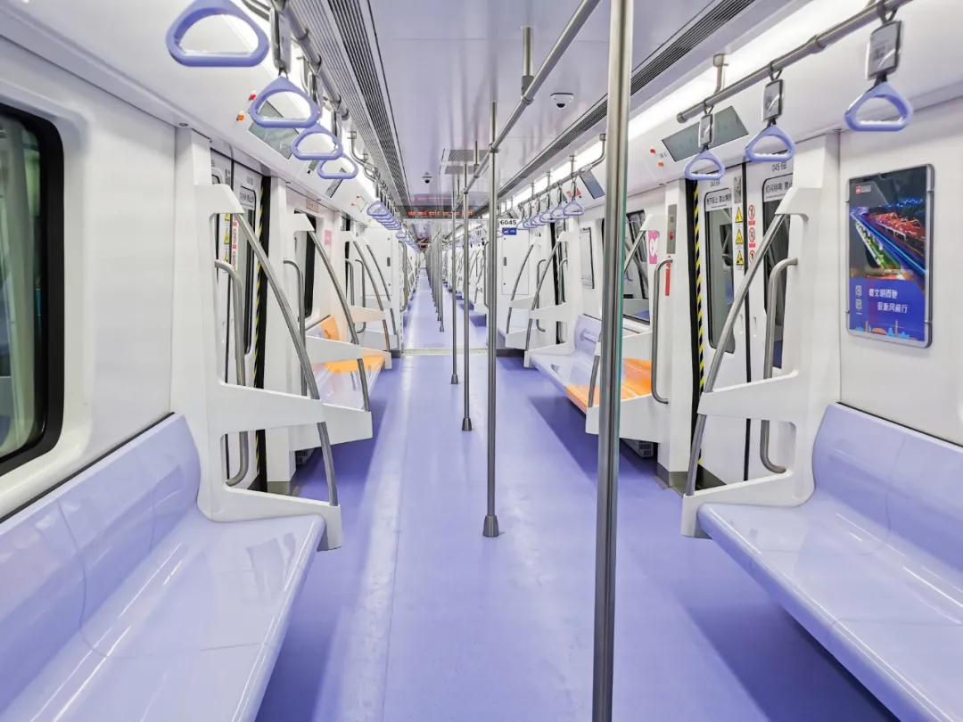 28日上午,小編乘坐開往西安國際醫(yī)學(xué)中心方向的6號(hào)線地鐵。該車車身腰線為一抹清新“星空藍(lán)”,車內(nèi)裝飾為點(diǎn)點(diǎn)淡雅“香芋紫”;車門上方的LCD顯示屏,既有整體線路、運(yùn)行狀態(tài)等基本信息,也有列車抵達(dá)下一站的預(yù)計(jì)時(shí)間,更有站臺(tái)層扶梯、直梯與洗手間的位置等便民信息;橙黃色的愛心座椅自帶加熱功能,科技感十足,有顏值,更便捷!