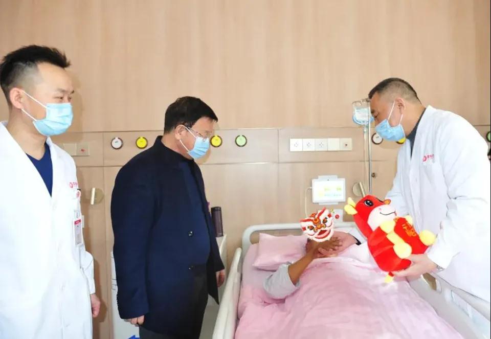 2月12日農(nóng)歷大年初一,國際醫(yī)學(xué)董事長史今、總裁劉瑞軒等領(lǐng)導(dǎo)一行來到西安國際醫(yī)學(xué)中心醫(yī)院,看望堅(jiān)守在一線崗位的醫(yī)護(hù)人員及住院患者,給大家拜年并送上新春祝福。院長尹強(qiáng)、總經(jīng)理王志峰等陪同慰問。
