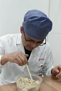 “餃子出鍋了!大家辛苦了!都來吃餃子!”剛出鍋的餃子冒著熱氣,香味彌漫在醫(yī)生辦公室、護(hù)士站。接到熱騰騰的餃子,重癥醫(yī)學(xué)科醫(yī)生張永樂迫不及待地咬了一口,牛肉大蔥餡正是他的最愛?!斑x擇了醫(yī)學(xué)就意味著奉獻(xiàn),看著醫(yī)院的年味越來越濃,病區(qū)里的患者一個(gè)個(gè)好轉(zhuǎn),病區(qū)患者慢慢變少,我還是挺有成就感的。”張永樂笑著說。