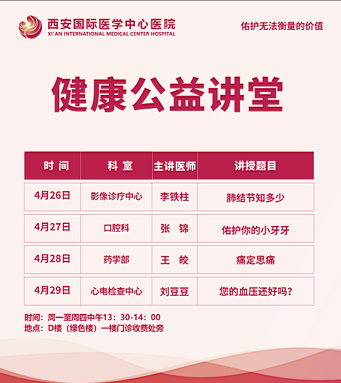 西安國際醫(yī)學(xué)中心醫(yī)院—青年醫(yī)師健康公益講堂預(yù)告