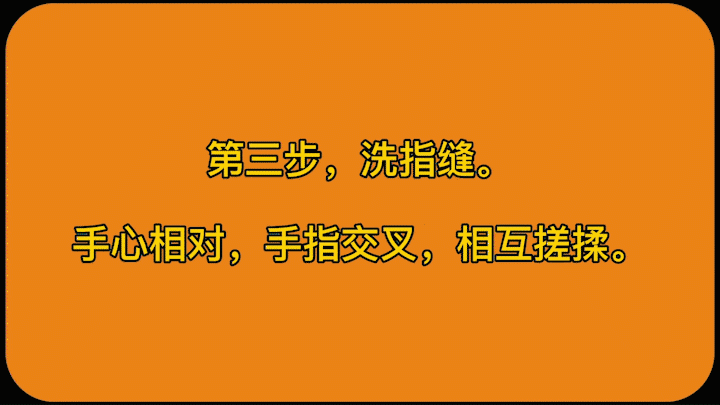 3、認(rèn)真揉搓雙手至少 15s,注意清洗雙手所有皮膚,包括指背、指尖和指縫,具體揉搓步驟(即七步洗手法步驟):