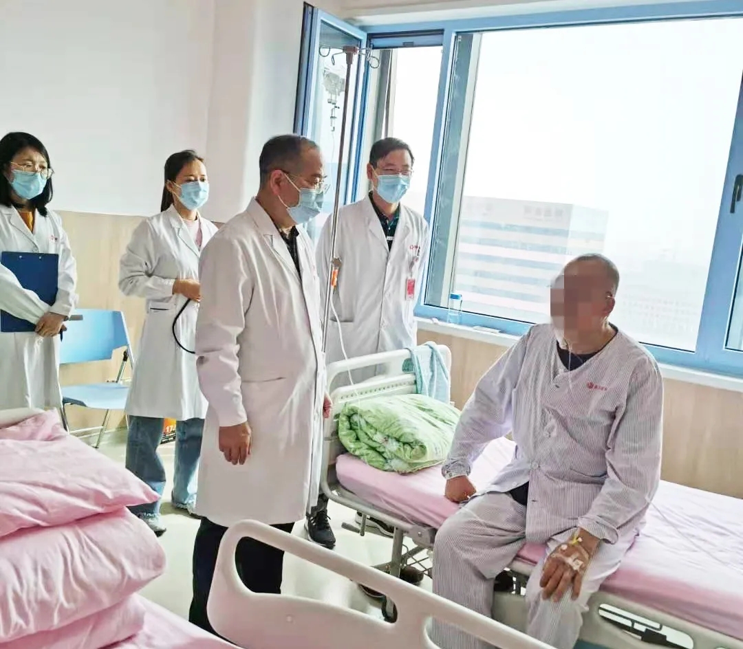 患者家屬擔(dān)心情況惡化,多方打聽(tīng)后找到胸科醫(yī)院吳昌歸院長(zhǎng)。吳昌歸了解病情后當(dāng)天收住患者入院并詳細(xì)制定診療方案?;颊呷朐簳r(shí)呼吸急促、意識(shí)模糊不清,當(dāng)晚疾病進(jìn)展迅速,使用呼吸機(jī)后患者氣短嚴(yán)重未有改善,指脈氧顯示血氧飽和度只有70%左右,并且大汗淋漓,體溫40℃,情況不容樂(lè)觀(guān)。