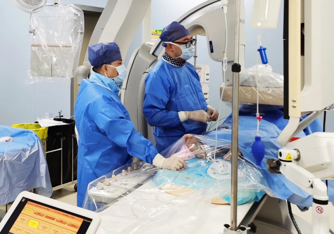 入手術(shù)室時,患者神志迷糊,口唇干燥、重度貧血貌,心電監(jiān)護(hù)提示:心率140-160次/分,血壓70/43mmHg,這是失血性休克的表現(xiàn)!白葦快速建立靜脈通道緊急給予輸血,升壓,止血等液,立即給予肝動脈造影,術(shù)中發(fā)現(xiàn)肝左葉疑似腫瘤病灶、病灶周圍血管分支有造影劑外溢,考慮血管破裂出血,迅速給予栓塞微球進(jìn)行肝動脈栓塞。整個手術(shù)過程不足20分鐘,術(shù)后即刻患者心率降至100-110次/分、血壓升至90/60mmHg。