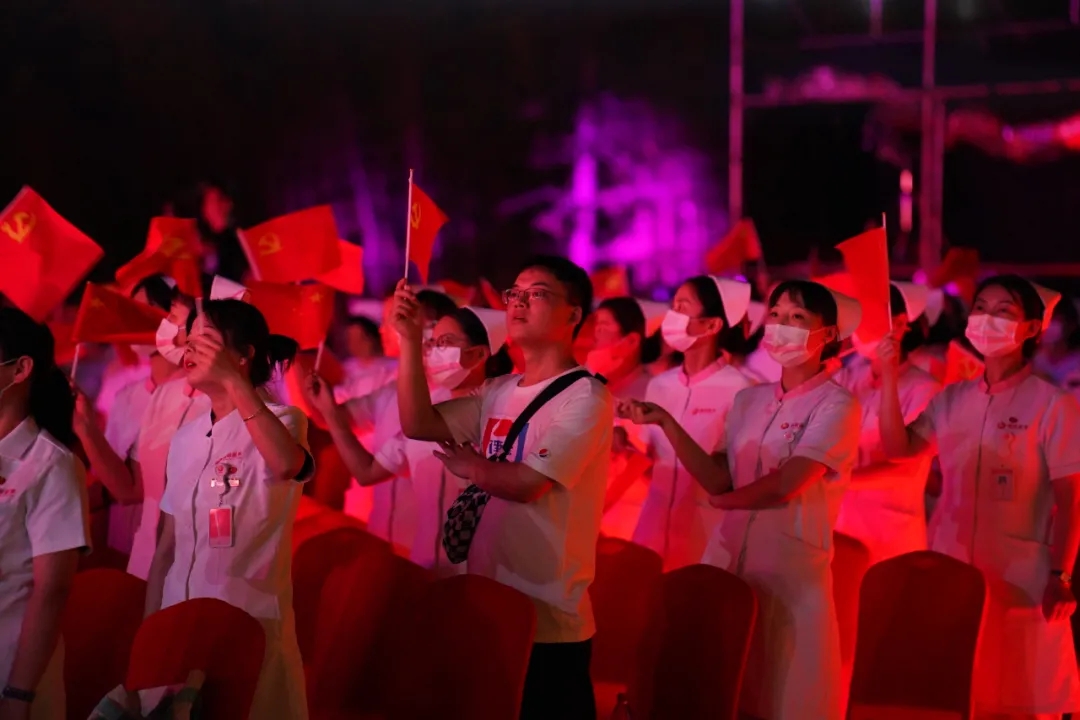 演出中,現(xiàn)場全體人員還共同觀看了《中國共產(chǎn)黨百年述職報(bào)告》,從中汲取精神力量,鼓舞大家奮勇前進(jìn)。