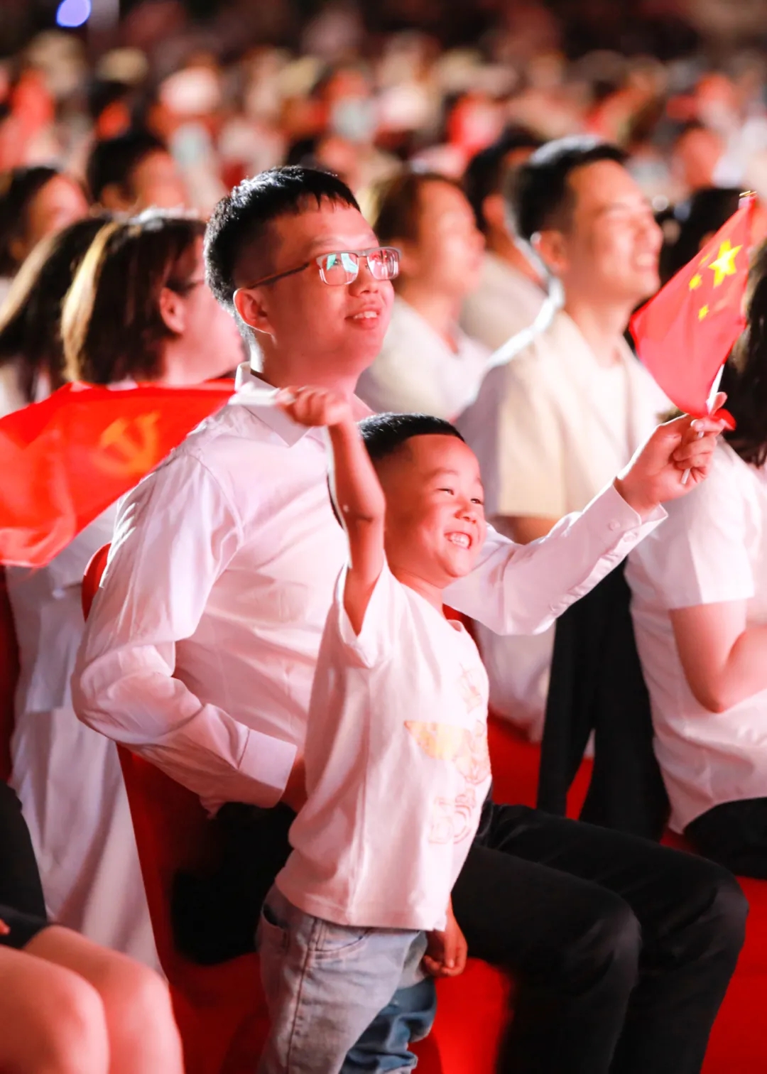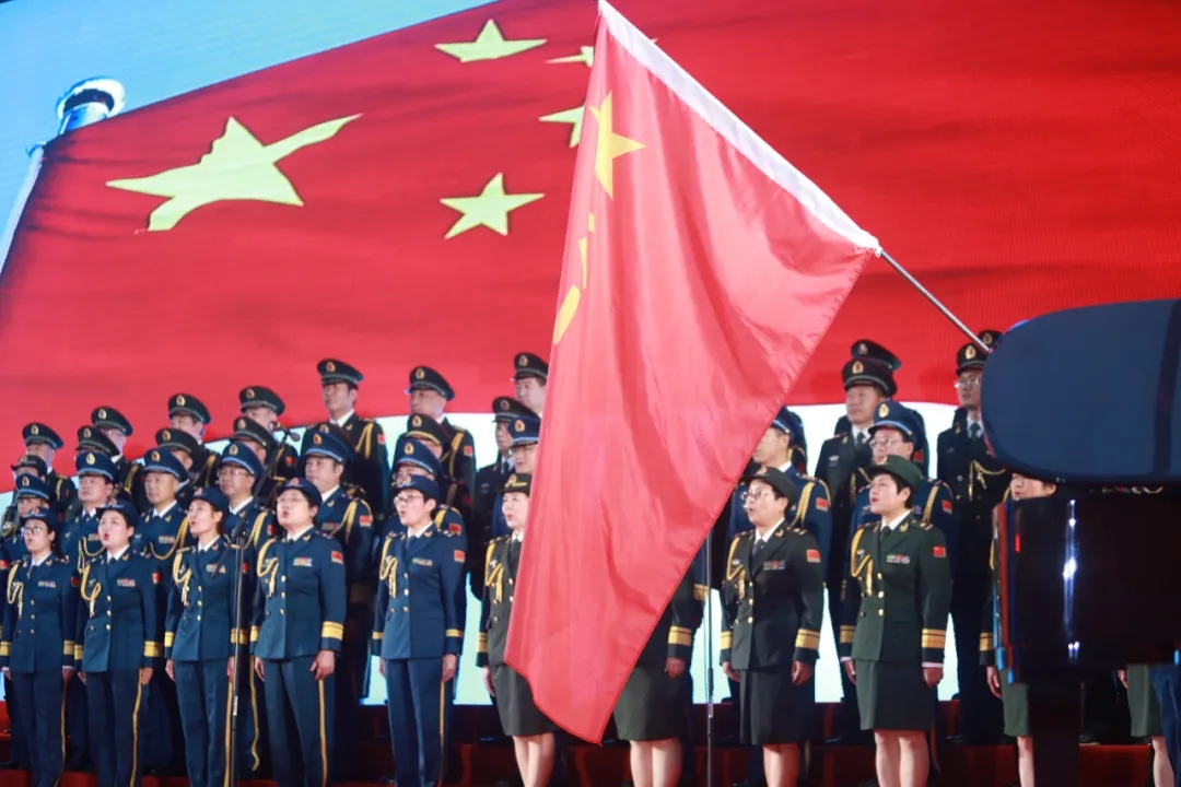 “我是一個兵,來自老百姓……”合唱將《我是一個兵》《沒有共產(chǎn)黨就沒有新中國》巧妙編排在一起?!段沂且粋€兵》鏗鏘有力,氣勢高亢,展示了老兵們永不褪色的軍人風(fēng)采;隨著中國人民解放軍進(jìn)行曲響起,三名軍旗手,邁著堅(jiān)實(shí)的步伐走上舞臺;“沒有共產(chǎn)黨就沒有新中國,沒有共產(chǎn)黨就沒有新中國……”激情高昂的歌聲表達(dá)出每一個人的心聲,合唱融入了京劇唱法,男聲鏗鏘有力,氣勢十足,女聲委婉細(xì)膩,優(yōu)美動聽,極富有感染力,將整場氣氛推向高潮,贏得全場陣陣掌聲。