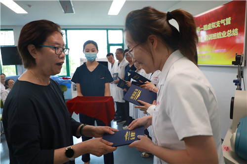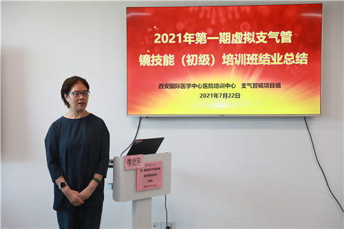 在結(jié)業(yè)典禮上,李武平院長頒發(fā)培訓(xùn)證書,對結(jié)業(yè)學(xué)員表示祝賀;對來自支氣管鏡檢查室、培訓(xùn)中心兼職教師谷志彬教授的專業(yè)素養(yǎng)與辛苦付出表示贊揚;對康福霞主任帶領(lǐng)下的培訓(xùn)中心工作團隊給予高度肯定。同時李院長指出:“每一段看似結(jié)束的培訓(xùn)旅程、都應(yīng)是每位學(xué)員職業(yè)生涯新的開始。國際醫(yī)學(xué)培訓(xùn)中心作為醫(yī)生的“圖書館”,應(yīng)當(dāng)時刻了解臨床所需,充分利用各種高端模擬設(shè)備,建立完善的課程體系,助力更多臨床醫(yī)生時刻充電;學(xué)員應(yīng)當(dāng)積極參加并珍惜每一次培訓(xùn)機會,豐滿自己羽翼?!?