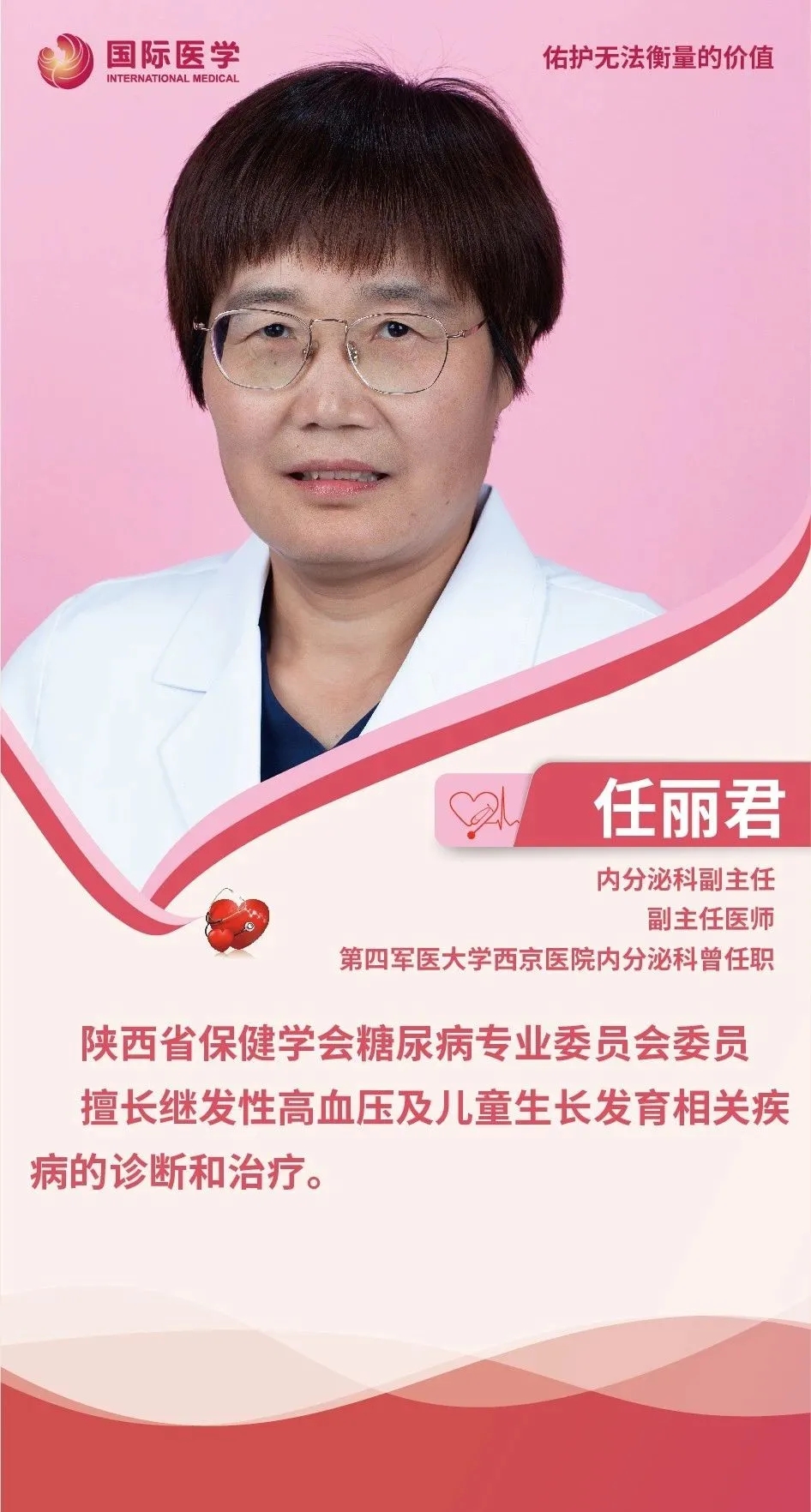 生命之重,重于千金,醫(yī)生是捍衛(wèi)生命的守護(hù)神,救死扶傷是醫(yī)生畢生追求的信念。從披上白衣成為一名內(nèi)分泌科醫(yī)生的那一刻起,“對(duì)生命負(fù)責(zé)”這一響亮的口號(hào),就成為她工作的源泉和動(dòng)力。她的肩上就擔(dān)負(fù)起“責(zé)任”和“挑戰(zhàn)”兩項(xiàng)重任。在她看來,患者的需求就是醫(yī)者努力的方向。她就是西安國際醫(yī)學(xué)中心醫(yī)院內(nèi)分泌科副主任任麗君。