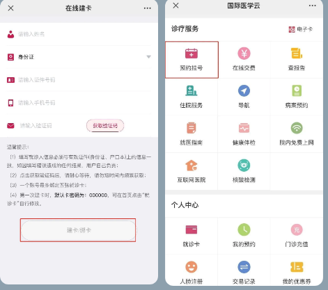 3、輸入個(gè)人信息完成就診卡綁定。綁卡后,點(diǎn)擊【預(yù)約掛號】