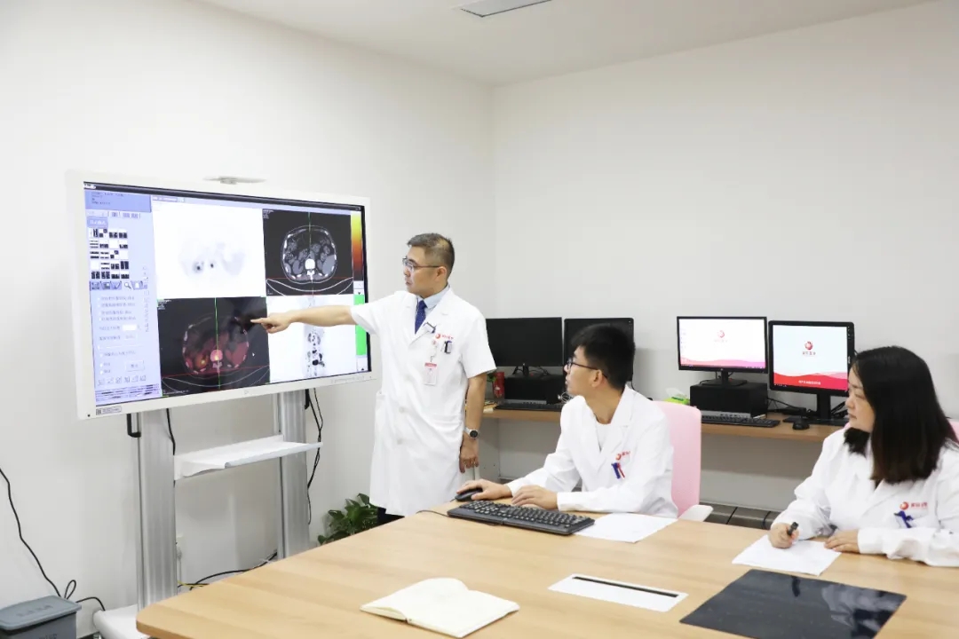在這個(gè)占地4100多平方米的核醫(yī)學(xué)科檢查區(qū)及病區(qū),王喆帶領(lǐng)團(tuán)隊(duì)開(kāi)展腫瘤及骨骼、甲狀腺、心臟、腎臟、呼吸、消化等系統(tǒng)的核醫(yī)學(xué)檢查項(xiàng)目,借助PET/CT、SPECT/CT、運(yùn)動(dòng)負(fù)荷心肌灌注顯像監(jiān)護(hù)儀、肺通氣氣體發(fā)生器等先進(jìn)設(shè)備進(jìn)行檢查,針對(duì)甲狀腺相關(guān)疾病,如甲亢、分化型甲狀腺癌術(shù)后進(jìn)行碘131治療、腫瘤骨轉(zhuǎn)移核素治療、磷32治療血管瘤等做相關(guān)診療。