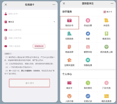 3、輸入個(gè)人信息完成就診卡綁定。綁卡后,點(diǎn)擊【預(yù)約掛號】