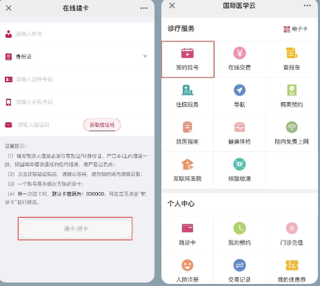 3、輸入個(gè)人信息完成就診卡綁定。綁卡后,點(diǎn)擊【預(yù)約掛號】