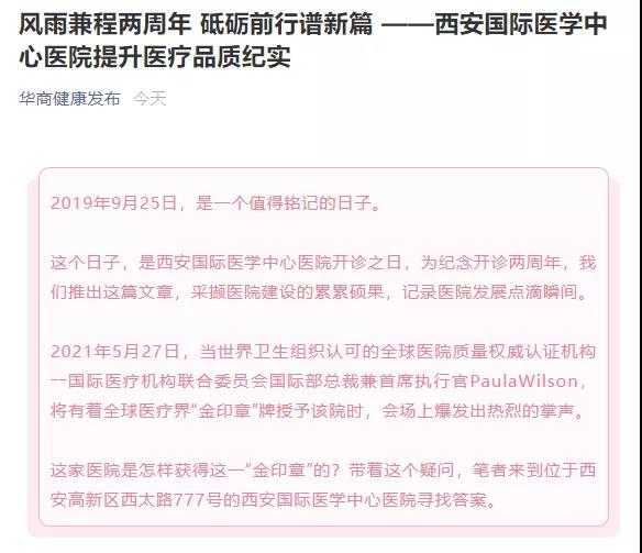 2019年9月25日,是一個(gè)值得銘記的日子。這個(gè)日子,是醫(yī)院開診之日。兩年來(lái),西安國(guó)際醫(yī)學(xué)中心醫(yī)院獲得了社會(huì)公眾及媒體的高度關(guān)注。