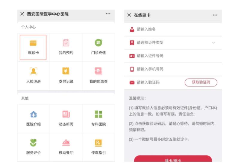 (2)沒(méi)有電子就診卡的人員,需輸入個(gè)人信息進(jìn)行在線建卡,建卡后返回診療服務(wù)頁(yè)面點(diǎn)擊【核酸檢測(cè)】,進(jìn)行核酸檢測(cè)預(yù)約并線上支付費(fèi)用。