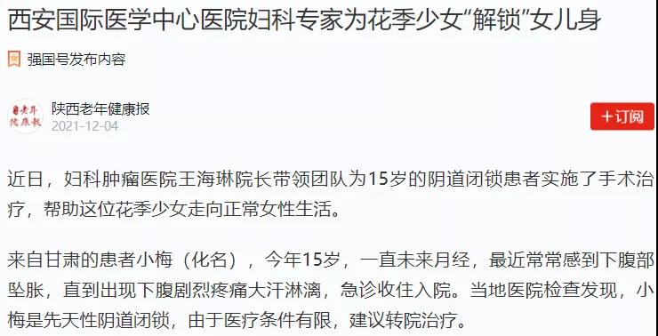 西安國(guó)際醫(yī)學(xué)中心醫(yī)院婦科專家為花季少女“解鎖”女兒身