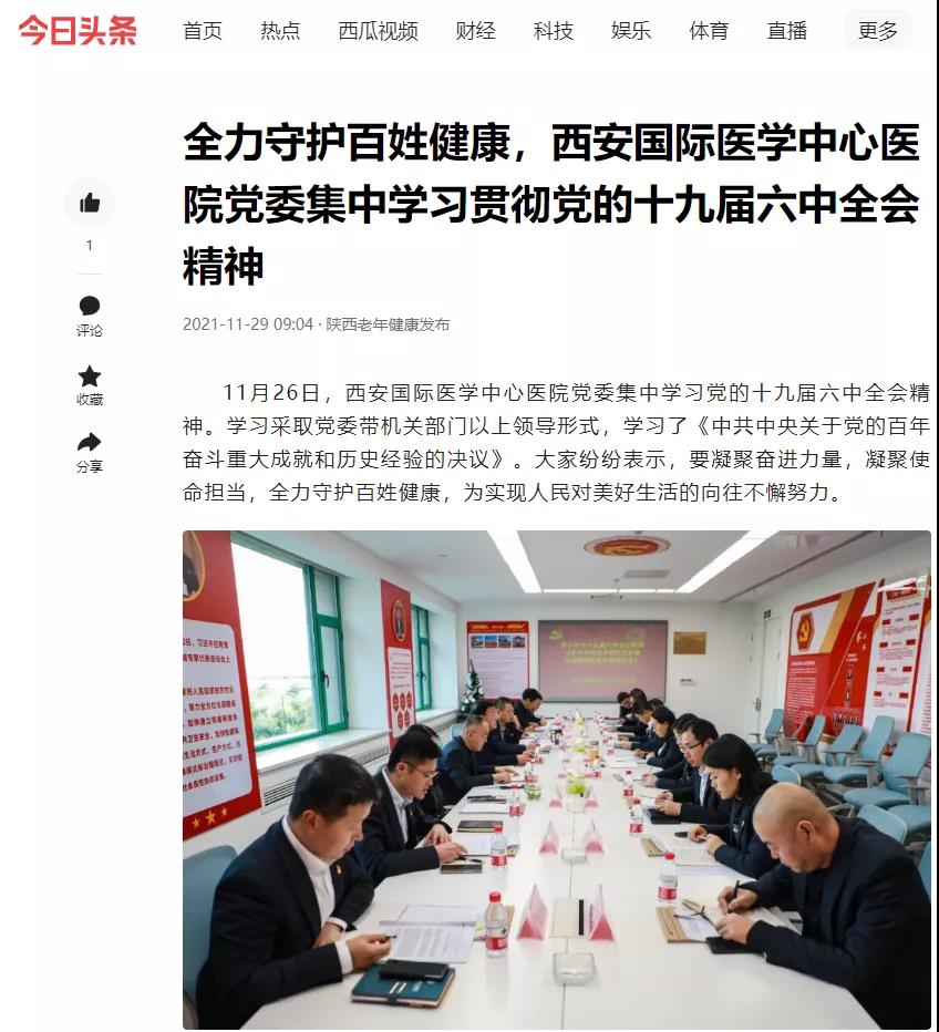 全力守護(hù)百姓健康,西安國(guó)際醫(yī)學(xué)中心醫(yī)院黨委集中學(xué)習(xí)貫徹黨的十九屆六中全會(huì)精神