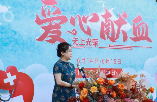 心臟病醫(yī)院心臟內(nèi)科一病區(qū)護(hù)士長楊蓓蕾作為獻(xiàn)血志愿者代表呼吁大家加入到無償獻(xiàn)血的隊(duì)伍中來,點(diǎn)亮生命之燈,讓世界更美好。