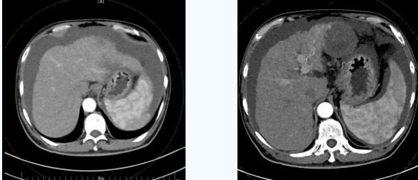 術(shù)后一個月秦先生來院復(fù)查,腹水已明顯較前減少,精神和飲食較術(shù)前明顯好轉(zhuǎn)。