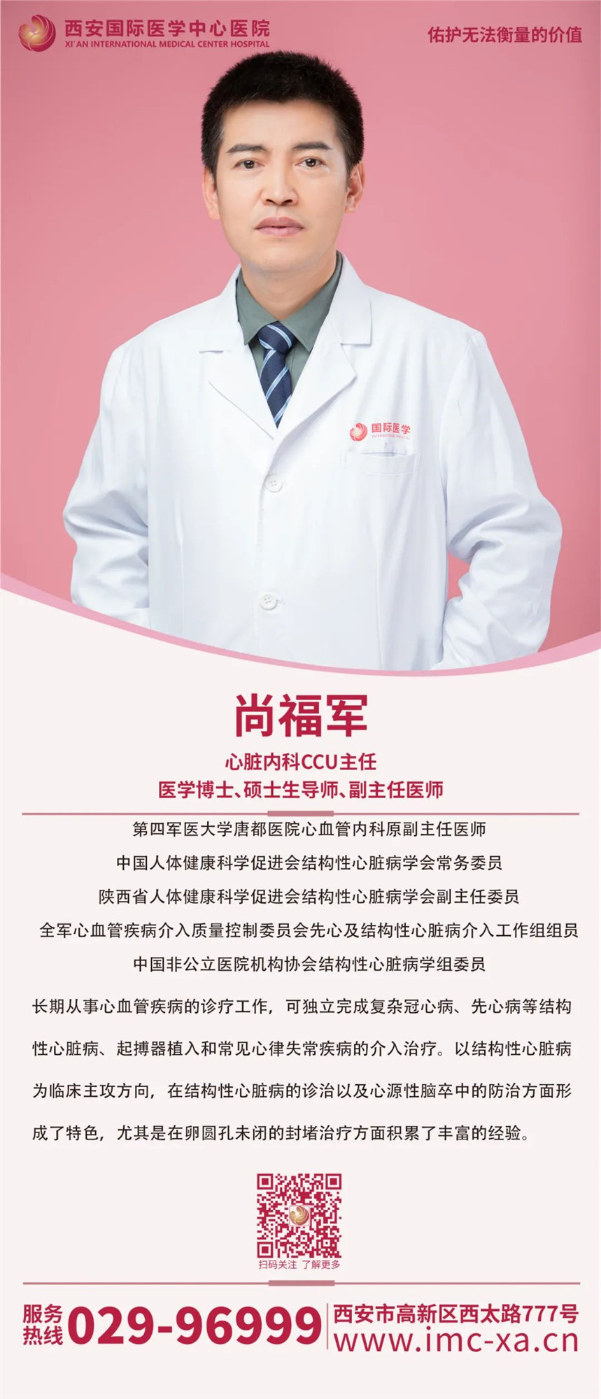 尚福軍在唐都醫(yī)院心內(nèi)科工作,一干就是十幾年,長期從事心血管疾病的診療工作,可獨(dú)立完成復(fù)雜冠心病、先心病等結(jié)構(gòu)性心臟病、起搏器植入和常見心律失常疾病的介入治療。以結(jié)構(gòu)性心臟病為臨床主攻方向,在結(jié)構(gòu)性心臟病的診治以及心源性腦卒中的防治方面形成了特色,尤其是在卵圓孔未閉的封堵治療方面積累了豐富的經(jīng)驗。