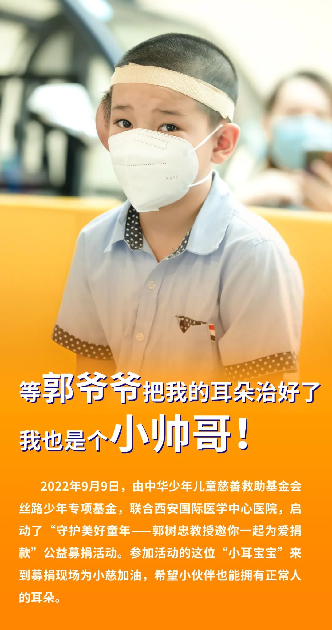 為了使更多“先天重疾兒童”恢復(fù)健康、快樂(lè)成長(zhǎng),9月9日,由中華少年兒童慈善救助基金會(huì)絲路少年專(zhuān)項(xiàng)基金,聯(lián)合西安國(guó)際醫(yī)學(xué)中心醫(yī)院,全面啟動(dòng)了“守護(hù)美好童年——郭樹(shù)忠教授邀你一起為愛(ài)捐款”公益募捐活動(dòng)。