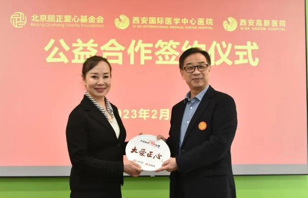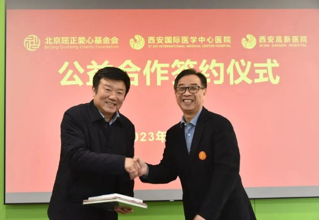 2月14日上午,西安國(guó)際醫(yī)學(xué)中心醫(yī)院、西安高新醫(yī)院與北京屈正愛(ài)心基金會(huì)公益合作簽約儀式在西安國(guó)際醫(yī)學(xué)中心醫(yī)院保障樓舉行,北京屈正愛(ài)心基金會(huì)創(chuàng)始人屈正、理事魏曉輝,國(guó)際醫(yī)學(xué)副總裁孫文國(guó),西安國(guó)際醫(yī)學(xué)中心醫(yī)院院長(zhǎng)尹強(qiáng),西安高新醫(yī)院總經(jīng)理范郁會(huì)、院長(zhǎng)宋瑛及醫(yī)院相關(guān)部室、專(zhuān)科醫(yī)院負(fù)責(zé)人等出席活動(dòng),西安國(guó)際醫(yī)學(xué)中心醫(yī)院副院長(zhǎng)付強(qiáng)主持儀式。