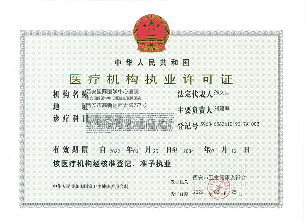西安國際醫(yī)學(xué)中心醫(yī)院執(zhí)業(yè)許可證