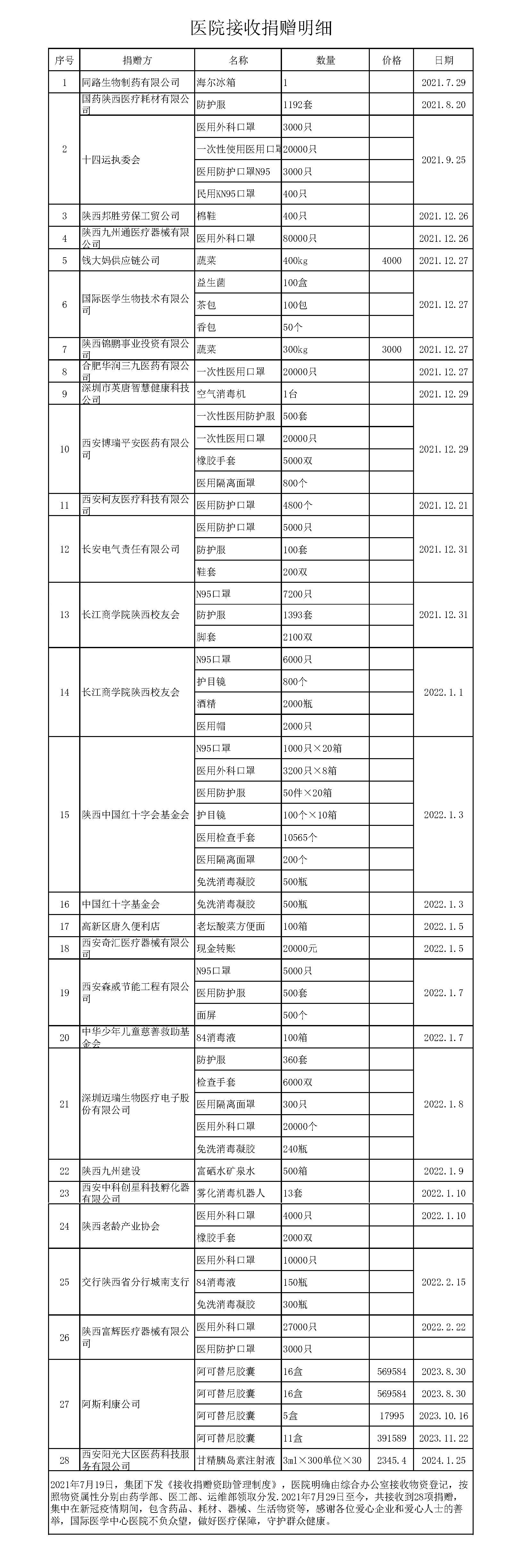 疫情期間接收物資主要有食品類、服飾類、清潔用品類、消毒用品等,物資主要有;方便面、礦泉水、84消毒液、慕斯軟墊、鞋子、拉拉褲、醫(yī)用垃圾袋、15L垃圾桶、等。捐贈(zèng)物資均是通過(guò)庫(kù)房管理員簽字接收直接入庫(kù)管理,領(lǐng)取方式:經(jīng)各部門領(lǐng)導(dǎo)同意后按要求發(fā)放,統(tǒng)一制定發(fā)放模版,部門(領(lǐng)用人)簽字,領(lǐng)用流程結(jié)束。庫(kù)房管理員將所有物資發(fā)放明細(xì)同步按類別歸檔保存。