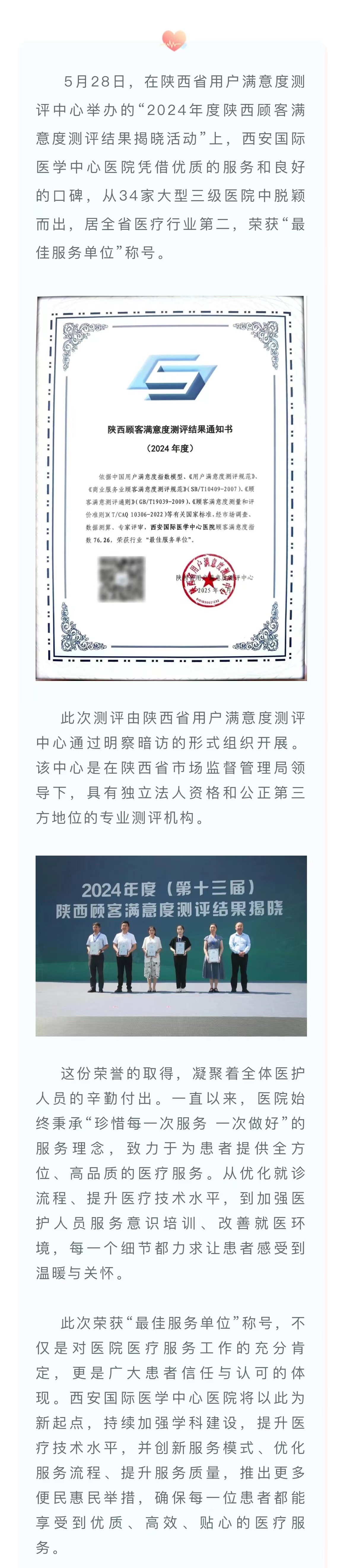 榜眼!陜西醫(yī)療行業(yè)“最佳服務(wù)單位”榜單新鮮出爐