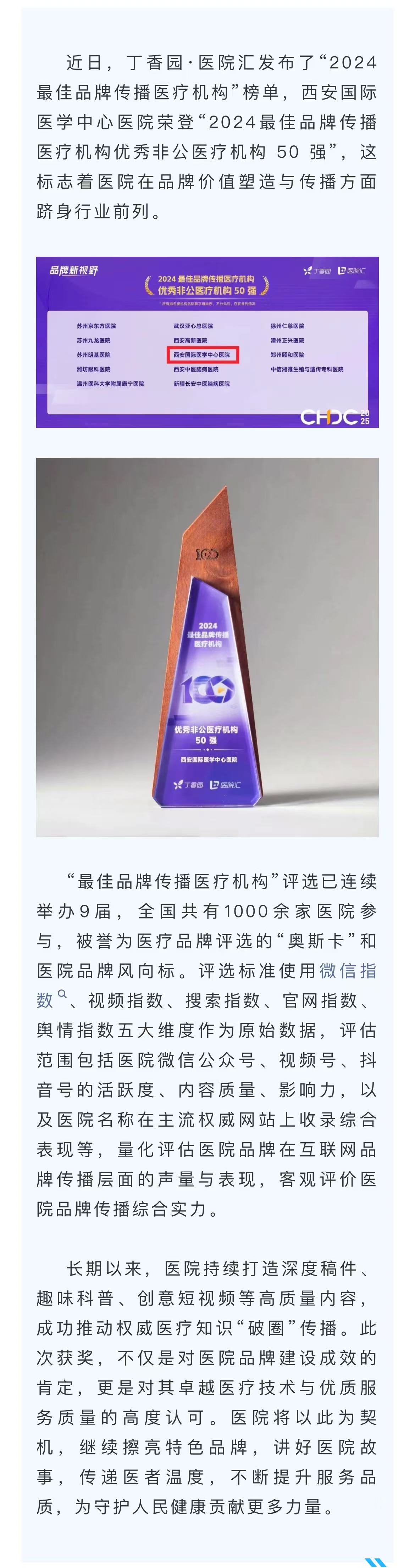 我院榮登“2024最佳品牌傳播醫(yī)療機(jī)構(gòu) 50 強(qiáng)”榜單